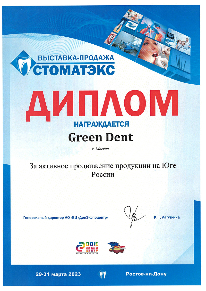 Награждается GREEN DENT за активное продвижение продукции на Юге России